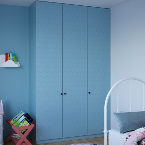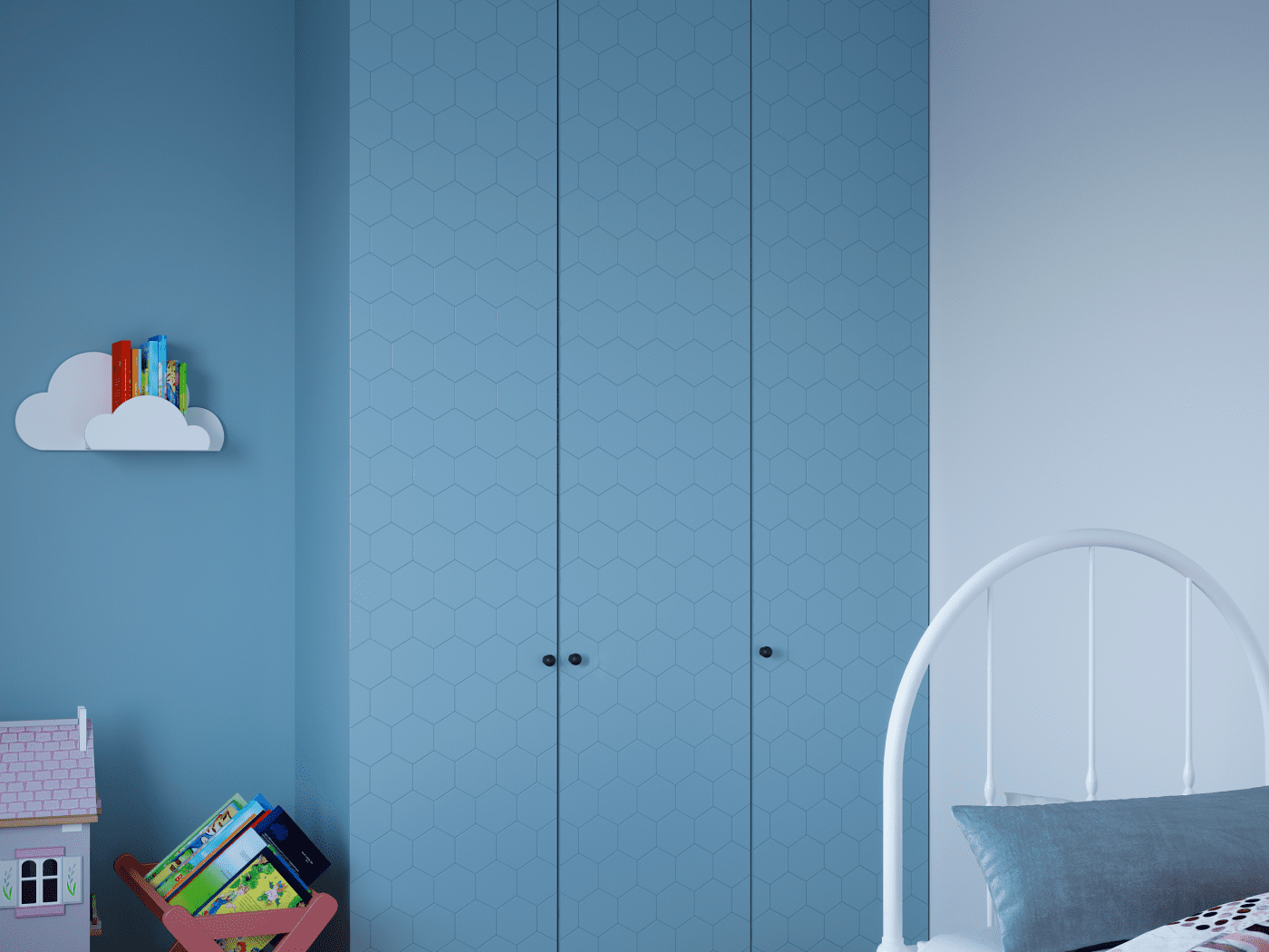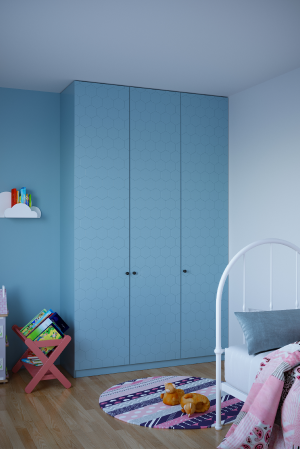 Создайте морскую гармонию в своей спальне с этим синим шкафом, с фрезеровкой в виде "ёлочки"